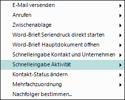 Sind Unternehmens- und Kontaktdatensatz bereits vorhanden, lässt sich über das Kontextmenu die Schnelleingabe aufgrund einer vorhandene Vorlage öffnen.