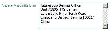 Hier können Sie Adressen erfassen, die von der in Deutschland gebräuchlichen Darstellungsform abweichen. Beispiel: