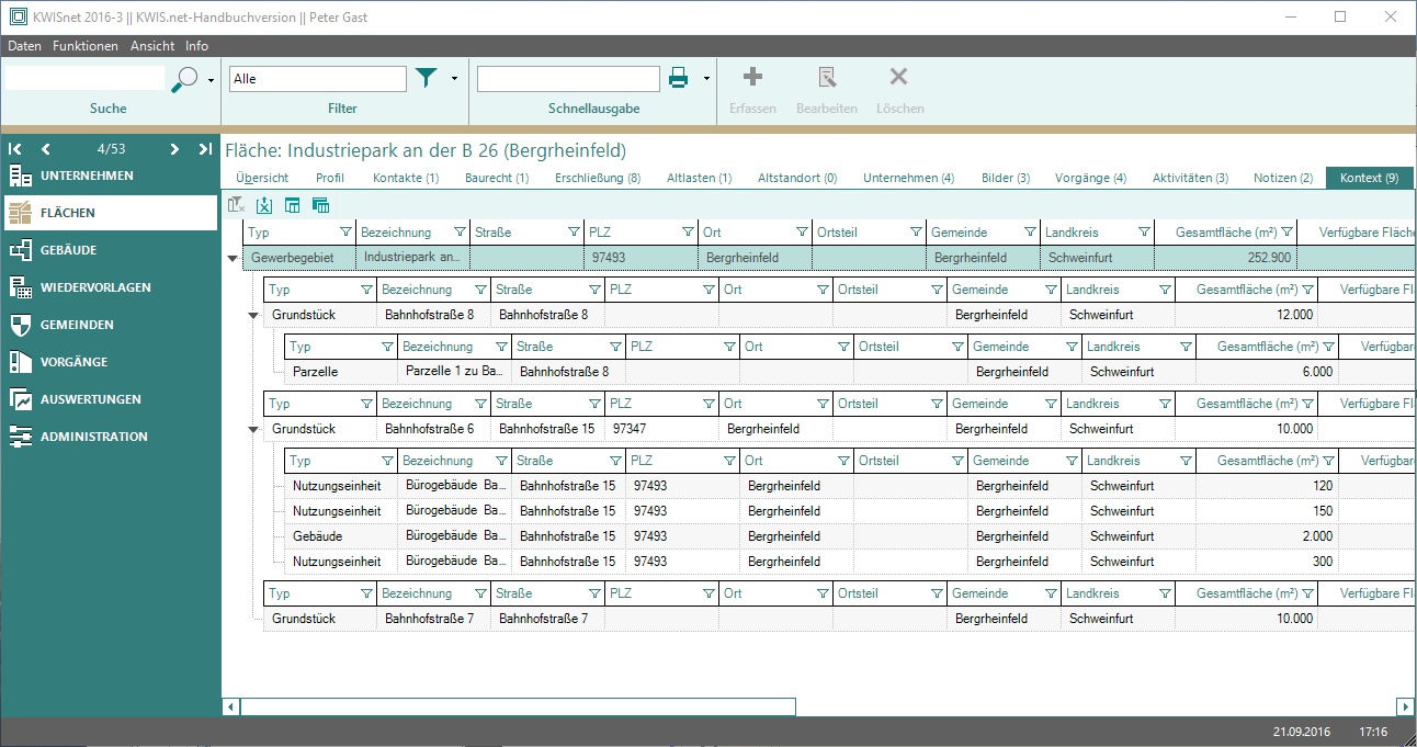 << Klicken um Inhaltsverzeichnis anzuzeigen >> Themenkategorie: Module > Flächen und Gebäude > Reiter Kontext |