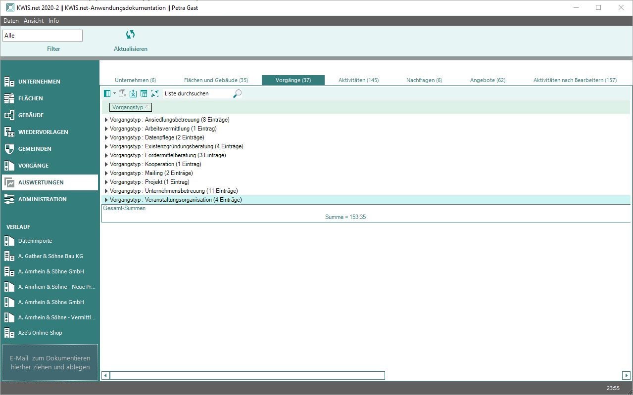 Auswertungen über Vorgänge