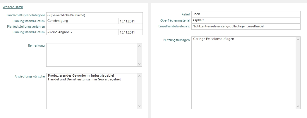 Falls die Immobilie in einem Areal liegt, zu dem es einen Flächennutzungsplan gibt, können Sie die entsprechenden Planungskategorien aus der Stammdatenliste auswählen sowie den Planungsstand samt Datum angeben.